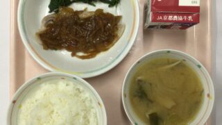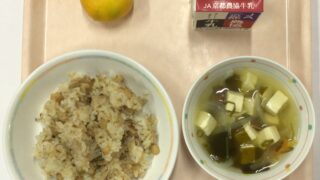 今日の給食 今日の給食:10月10日(金) 京丹波町20周年記念特別献立 🥢ご飯(特別栽培米コシヒカリ) 🥢まめたんバーグ(イシイ食品との共同開発) 🥢ほうれん草とキャベツのおかか和え 🥢はたけしめじと油揚げのみそ汁(須知高校の味噌) 🥢いがぼうず(山下秀製菓の和菓子) 2025.10.10 今日の給食