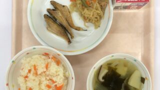 🥢にんじんごはん 🥢はたはたのから揚げ 🥢切干大根の煮物 🥢すまし汁