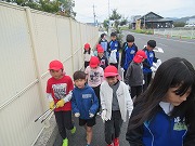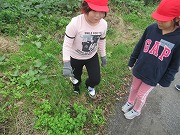 3年生も中学生も4つのグループに分かれて、それぞれ4つのコースを歩きながら、ごみを拾っていきました。ふだん通っている道ですが、いざ足元に目を向けるとゴミが落ちているもので、意外とたくさん拾うことができました。