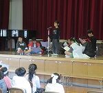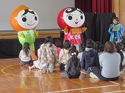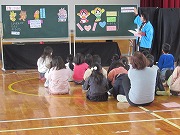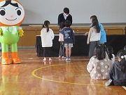 1年生は、人権に係る紙芝居やお話を聞き、最後には、すいせんの球根を植え、大切に育てていきたいと思います。また、紙芝居のキャラクターにも登場してもらい、握手をしたりして、人権について親しみながら、考えることができました。