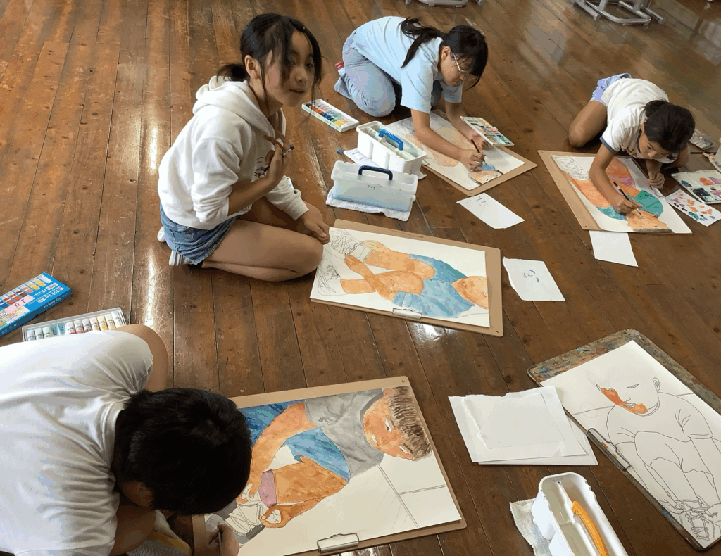 4年生 図画工作科「くつひもを結んでいる自分」 学校日誌 2025.10.07 今4年生の図画工作科では、「くつひもを結んでいる自分」を描いています。下絵が終わり、今は着色をしています。肌も少しずつ色を変えながら、服や靴は影の部分も入れながら丁寧に着色をしています。完成が楽しみです。 色を混ぜ合わせながら丁寧に塗っています。