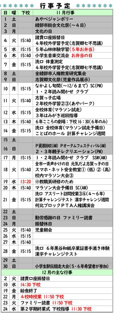 令和7年度 11月行事予定