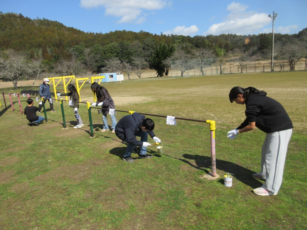 鉄棒が美しく・・・🤩 学校日誌 2026.03.11 3月11日(水)の5校時に、6年生の卒業プロジェクト「お世話になった学校へ感謝の気持ち」を伝える1つの取組として、鉄棒のペンキぬりをしてくれました。3度ぬりをしてくれたので鉄棒はピッカピカになりました。6年生ありがとう!! さびさびだった鉄棒が・・・ こんなに美しく!!6年生ありがとう!!