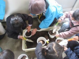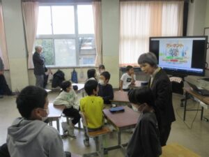 学校の様子人権擁護委員の皆様にご来校いただき、1・4年生が「人権教室・人権の花運動」をお世話になりました。「いじめを許さない心」「相手の気持ちになって考えること」「困ったことがあった時は友だちや先生、家族に相談すること」の大切さを紙芝居やDVD資料等を使って教えていただきました。また1年生は人権の花「すいせん」の球根植えもさせていただきました。ご準備・運営をいただきました人権擁護委員の皆様、誠にありがとうございました。