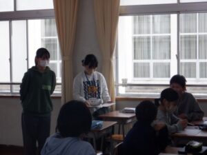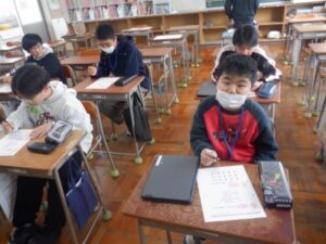 学校の様子6年生は次年度の網野中学校入学に向けて「入学説明会」と「授業体験」に行ってきました。はじめは4小学校の6年生に入学後の学習や生活について説明いただき、事前の質問事項等にもこたえていただきました。後半は国語・社会・数学・理科・英語に分れて他校の友だちとともに中学校の先生の授業を楽しみました。中学生になった自分をより近くに感じられる貴重な体験となりました。準備等たいへんお世話になりました中学校の先生方、本当にありがとうございました。