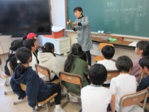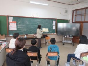 学校の様子年内最後の読み聞かせにきていただきました。12月ということもあり、クリスマスやサンタさんのお話をしていただく方もありました。「興味をもって聞いてくれました」「とても静かに聞いてくれました」「教室を出るときに、また来てねと言ってくれて、楽しんでくれたことがわかりました」毎回楽しい時間をつくってくださる読み聞かせボランティアの皆様に感謝いたします。
