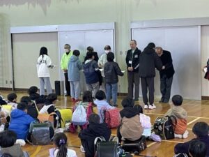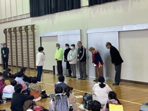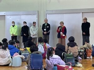 主任児童委員様、各地区でお世話になっております民生児童委員の皆様、見守り隊の皆様をお招きし感謝の会を実施しました。新たに民生児童委員に就かれた皆様もおられ、自己紹介をいただきました。その後、児童会会長から感謝の言葉、代表児童から感謝の手紙をお渡ししました。この1年の見守りに感謝申し上げますとともに、次年度も引き続きよろしくお願いいたします。