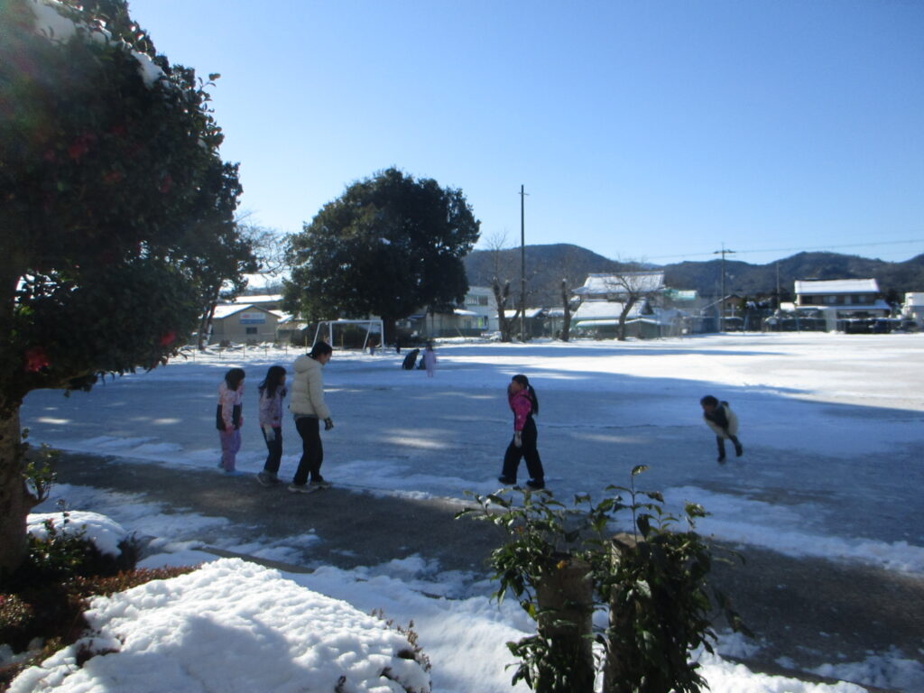 大雪警報が明けた次の日、1年生が生活科で冬みつけをしていましたよ。