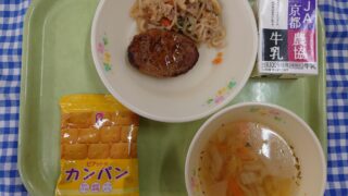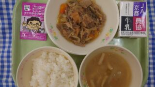 ごはん 豚肉のごま煮 大根のみそ汁 おかかふりかけ 牛乳