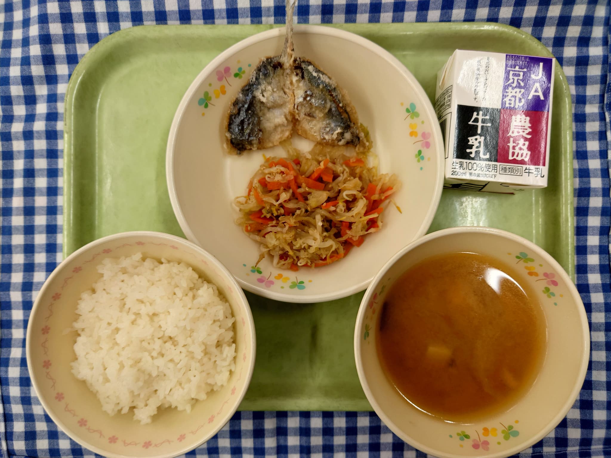 9月30日(火)の給食 食育の取組 2025.09.30 ごはん 開きアジの唐揚げ キャベツのごま和え 豆腐のみそ汁 牛乳 今日の給食はアジを使った唐揚げでしたが、いつもの切り身ではなく、開き身のものを使いました。身を開くことで、骨までしっかり熱が入るため、カラッと揚がっており、おいしく食べることができました。子どもたちからも「しっぽたべれる?」と聞いてくれて、カラッとしていておいしいよ!と伝えると「しっぽたべられた!」「おいしかった!」といっておいしく食べてくれました! Post Views: 41