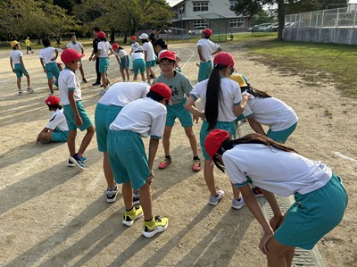 走り終えたあとは、思わず座り込むほどの疲れよう。それでも最後は先生たちとの鬼ごっこをして、楽しみながらトレーニングを続けていました。