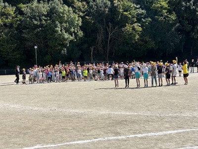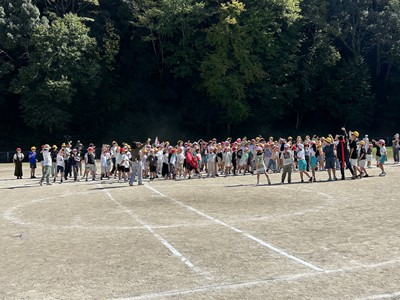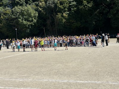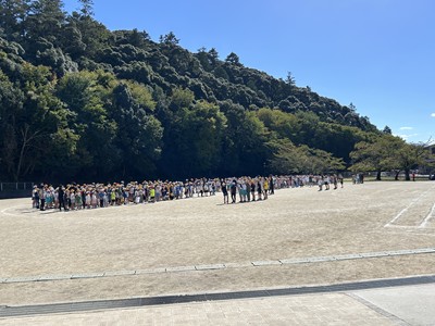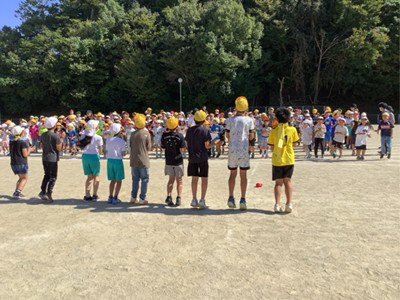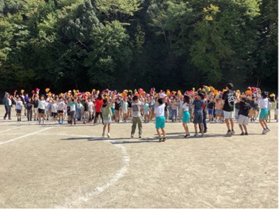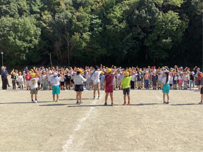 昼休み、運動場に出て応援練習に取り組みました。