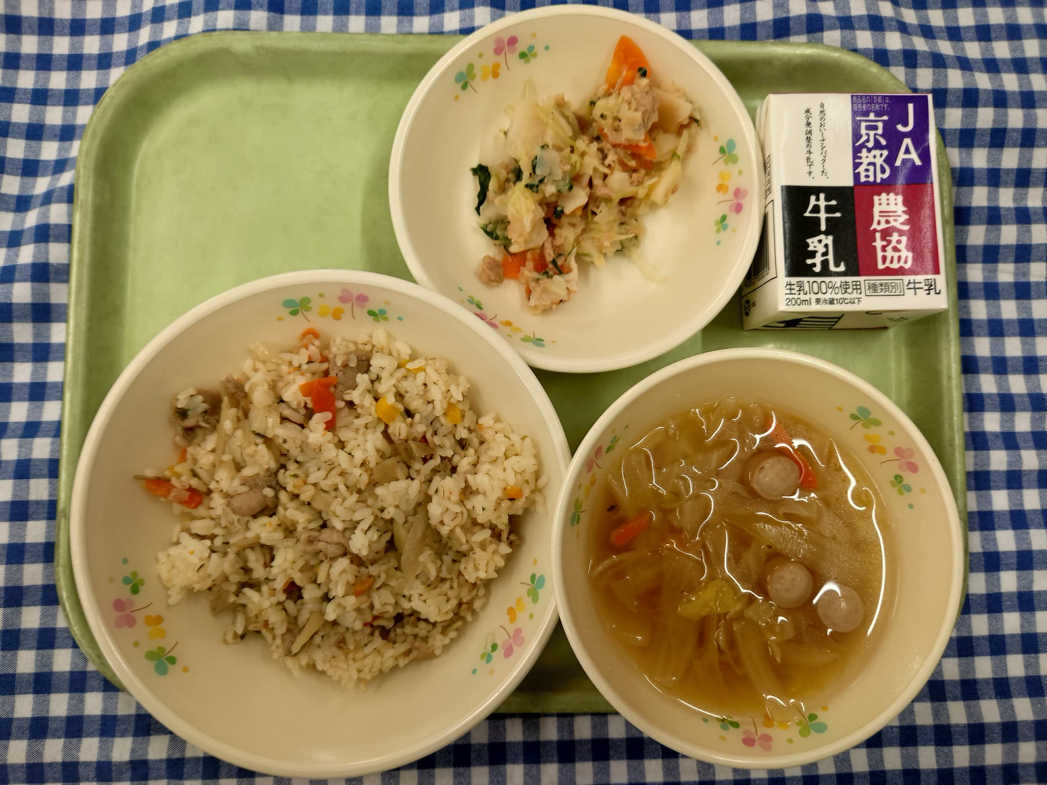 10月23日(木)の給食 食育の取組 2025.10.23 秋の味覚献立週間 ごぼうピラフ さっぱりポテトサラダ ウインナーのスープ 牛乳 今日の秋の味覚はごぼうでした。水溶性食物繊維であるイヌリンを多く含み、病気の予防やおなかの調子を整えてくれます。また香り成分やうま味成分は皮に含まれているため、周りについた土を洗い流し、皮ごと調理すると栄養価がアップします。ピラフは人気のメニューで、たくさんの子がおかわりに来てくれてたくさん食べてくれました。 Post Views: 23