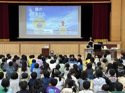 10/24 オーサー・ビジット そのべっ子日記 2025.10.25 園部小学校で「オーサー・ビジット」が行われました。「オーサー・ビジット」とは、本の著者(オーサー)が学校を訪問(ビジット)し、子どもたちに本の楽しさや学ぶことの魅力を伝える取組です。今回は、気象予報士の佐々木恭子さんが来校され、天気の不思議について、とてもわかりやすくお話してくださいました。ペットボトルを使って雲を発生させる実験では、子どもたちから驚きの声があがりました。身近な空や雲について、楽しく学ぶことができた貴重な時間となりました。 Post Views: 26
