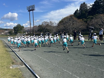 朝の放送で、「持久走大会は“速さの大会”ではなく、“あきらめない大会”です」という話を全校児童にしました。その言葉通りに、一人ひとりが自分のペースで最後まで走りきることができました。