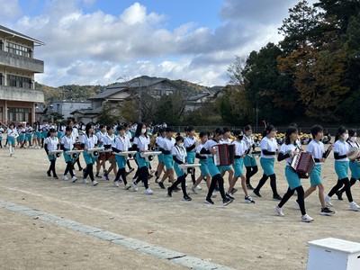 また、5・6年生にとっては、今年が最後となる鼓笛の演奏。「最後を飾る最高の鼓笛にしたい」という思いが伝わってくる、力強く、気持ちのこもった演奏が運動場に響きました。