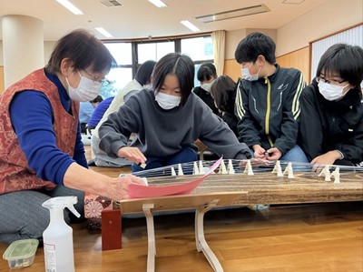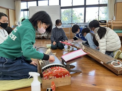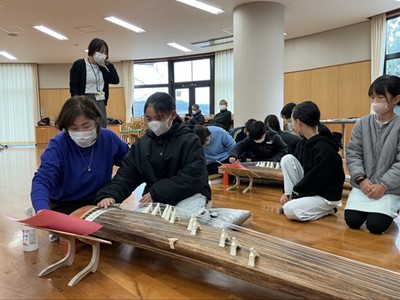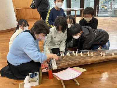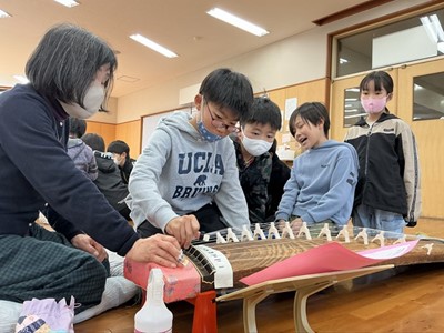 5年生 お琴学習 5年生 2025.12.092025.12.08 音楽の授業で、和楽器に親しむため、地域の方に琴の演奏を教えていただきました。多くの子どもたちにとって、和楽器を間近で見るのも、その音色を聴くのも初めての経験です。目を輝かせながら、琴の美しい音に耳を傾けていました。実際に琴の演奏体験もさせていただき、弦に触れるたびに「もっと弾いてみたい!」「お琴を習いたい!」と嬉しそうな声があがっていました。子どもたちにとって、琴の楽しさや和楽器の魅力をたっぷり味わえる、とても充実した時間となりました。 Post Views: 71