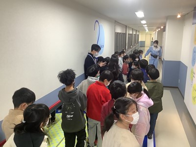 その後、実際の製造ラインを見学し、学校給食で飲んでいる牛乳がどのようにつくられているのかを間近で見ることができました。おいしい商品を届けるための工夫や、徹底した衛生管理にも感心していました。