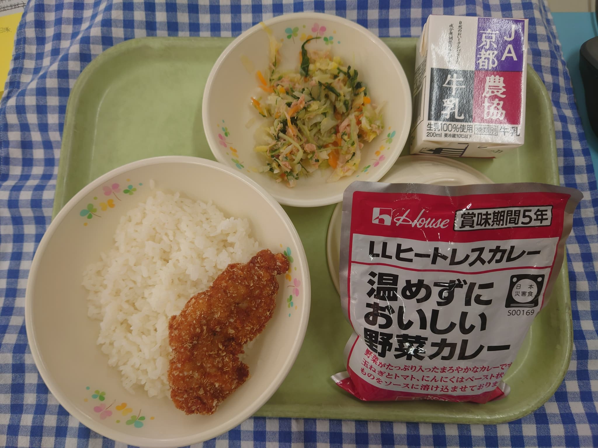 ごはん ヒートレスカレー チキンカツ ツナサラダ 牛乳