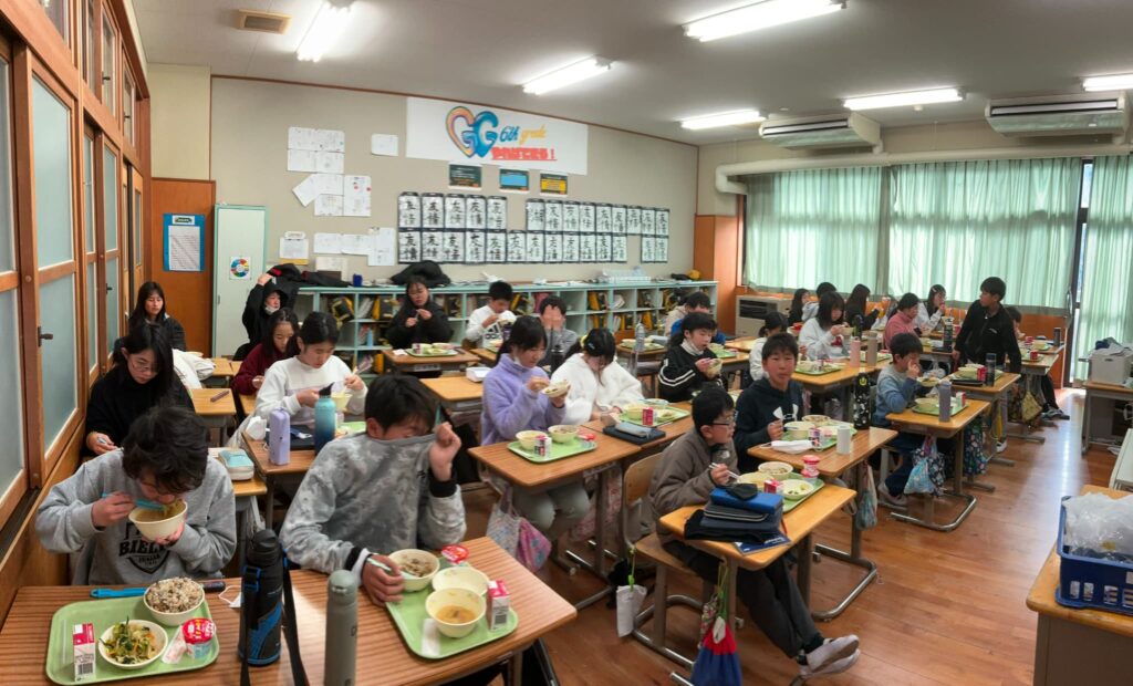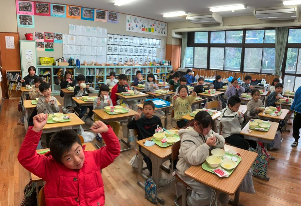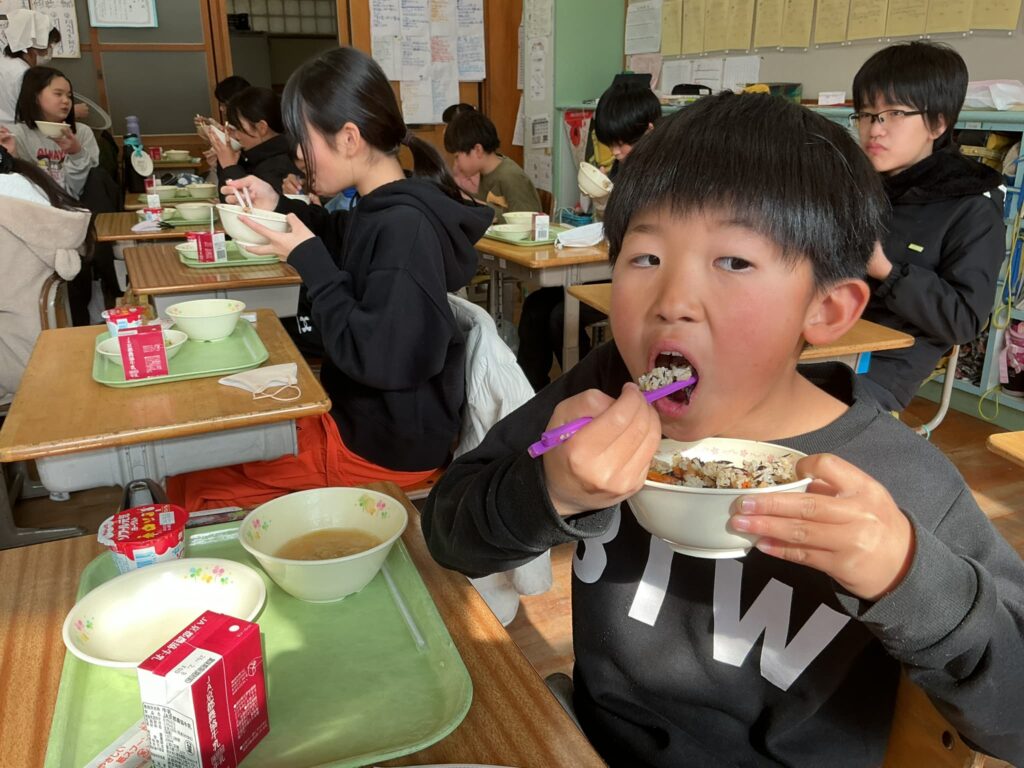 今日は給食週間最終日でした。最後のテーマは骨に欠かせない栄養素ビタミンDとビタミンKです。ビタミンDはカルシウムを体に吸収しやすくする栄養素で、魚やきのこ類に多く含まれています。また日光浴をすることで、体の中で作られる栄養素でもあります。ビタミンKは骨の形成を助けるビタミンで、納豆や青菜に多く含まれています。ひじき豆まめごはんやヨーグルトが大人気で「豆いっぱい入ってた!」「ごはんおいしい!」「ヨーグルト毎日食べてるよ!」と楽しい会話が聞こえてきました。給食週間としては今日で終わりましたが、給食は毎日続きます。給食を食べて元気な体を作るとともに、たべることが好きなそのべっ子になってほしいと思っています。