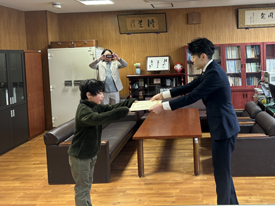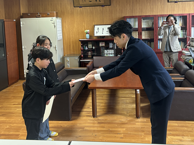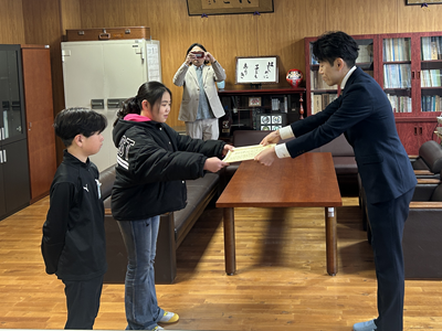 優秀賞を受賞した児童と、学校団体賞の代表として5年生2名が、「クリナップ」様より直接賞状を手渡されました。