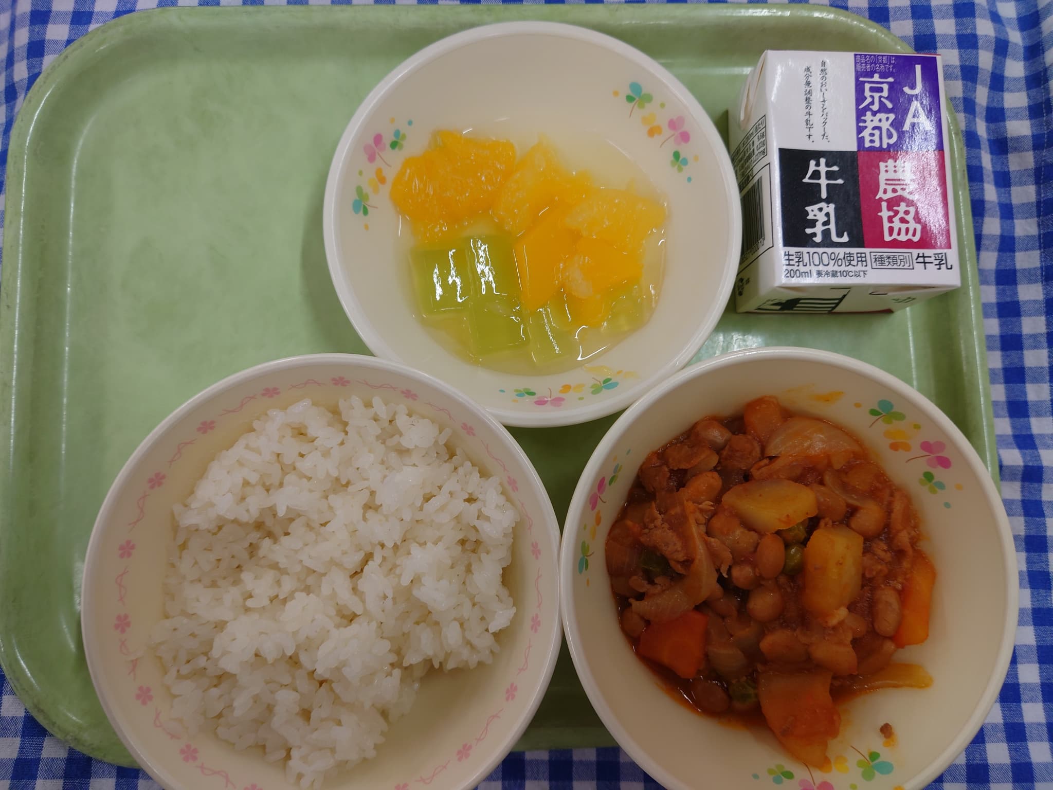 ごはん 大豆のミートソース煮 フルーツポンチ 牛乳