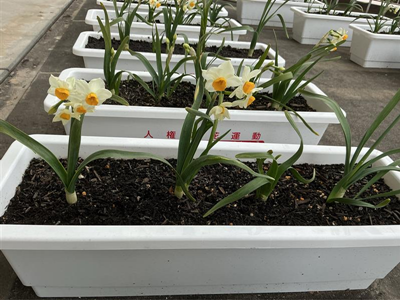 3年生 人権の花が咲きました! 3年生 2026.02.16 10月に植えた人権の花(スイセン)が咲きました。球根を植えた日から「どんな花が咲くのかな?」と楽しみに毎日の水やりに取り組んできました。「白い花がさいてるー!」と大喜びの子どもたち。 まだまだ満開ではないので、これからも引き続き水やりをして、大事に育てていきます。 Post Views: 66