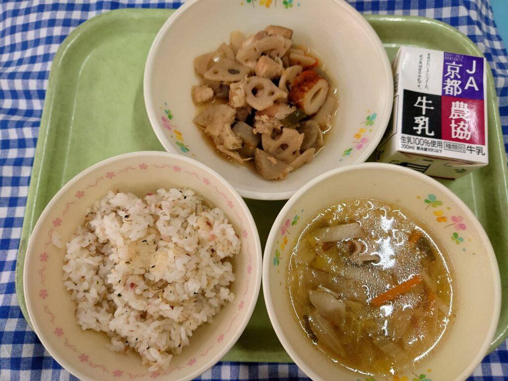 梅ちりごはん 筑前煮 冬野菜のあったか椀 牛乳