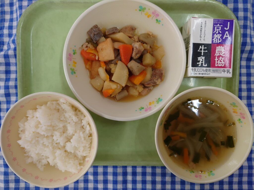 ごはん こんにゃくのピリ辛煮 春雨スープ 牛乳