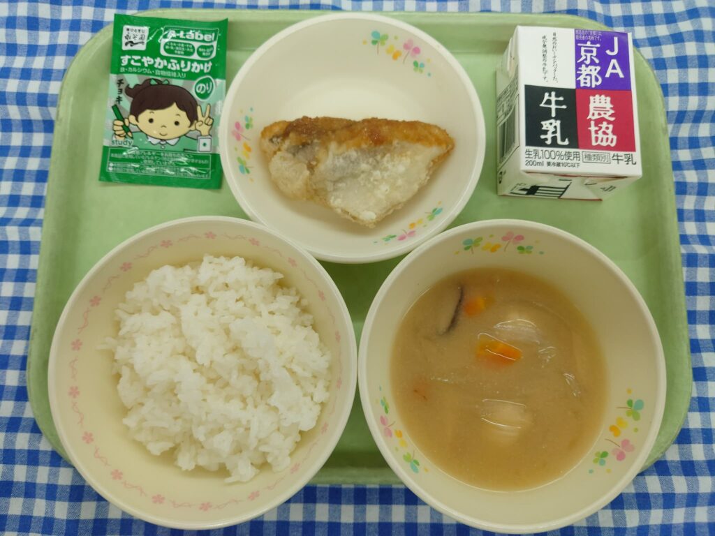4月17日(金)の給食 食育の取組 2026.04.20 ごはん タラのレモンソースがけ 口福汁(こうふくじる) のりふりかけ 牛乳 口福汁(こうふくじる)は、南丹市健幸・食育レシピコンテストで、昨年度「学校給食賞」を受賞した料理です。市内の小中学生が減塩や地産地消を考えて作ったレシピです。 Post Views: 92