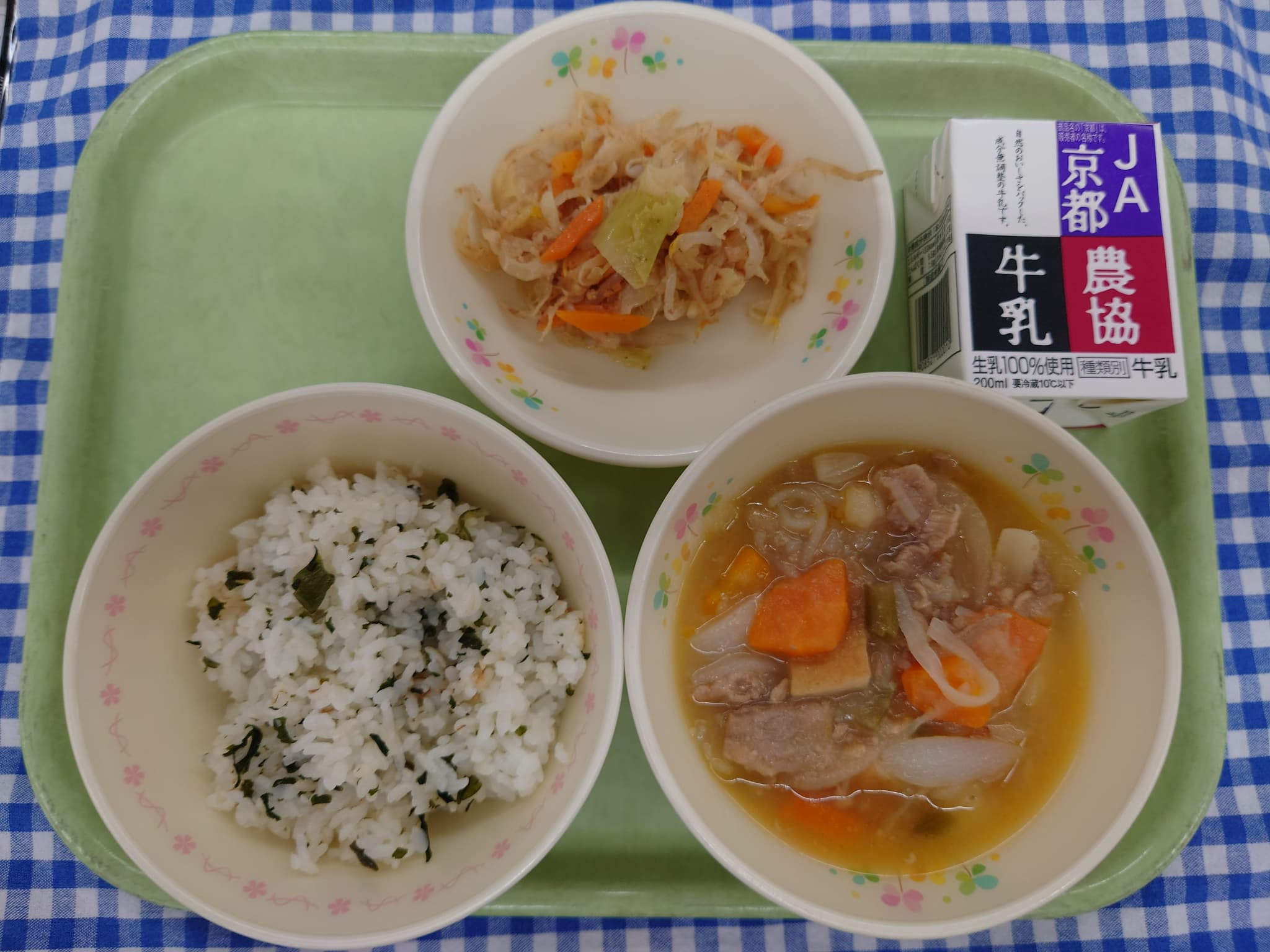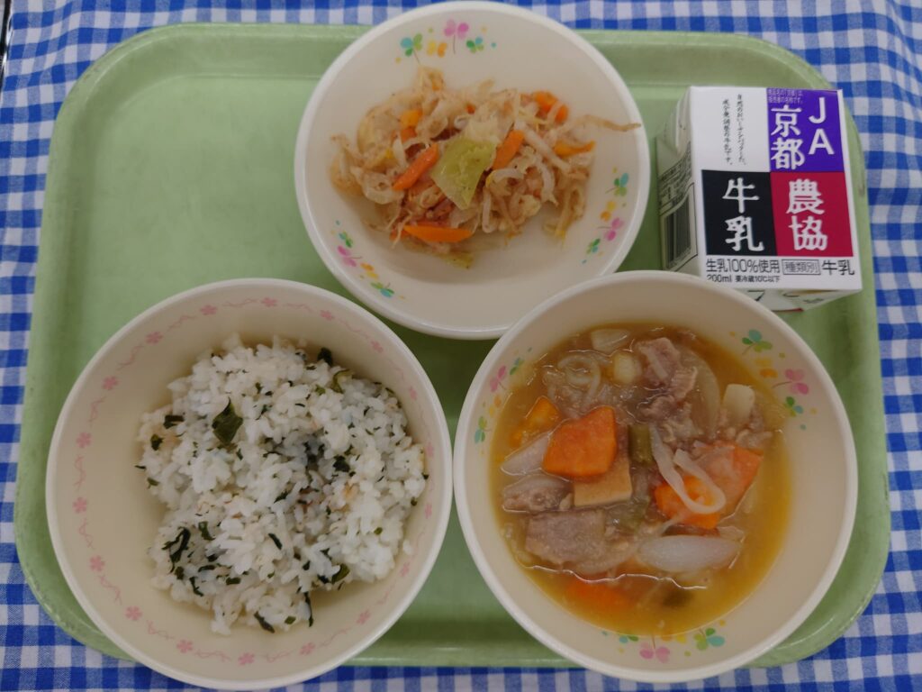 わかめごはん 肉じゃが キャベツのおかか和え 牛乳