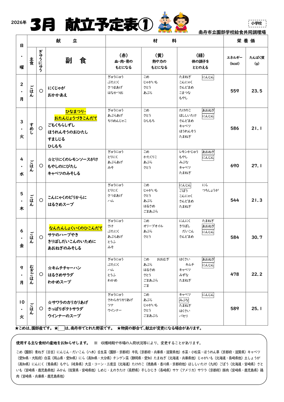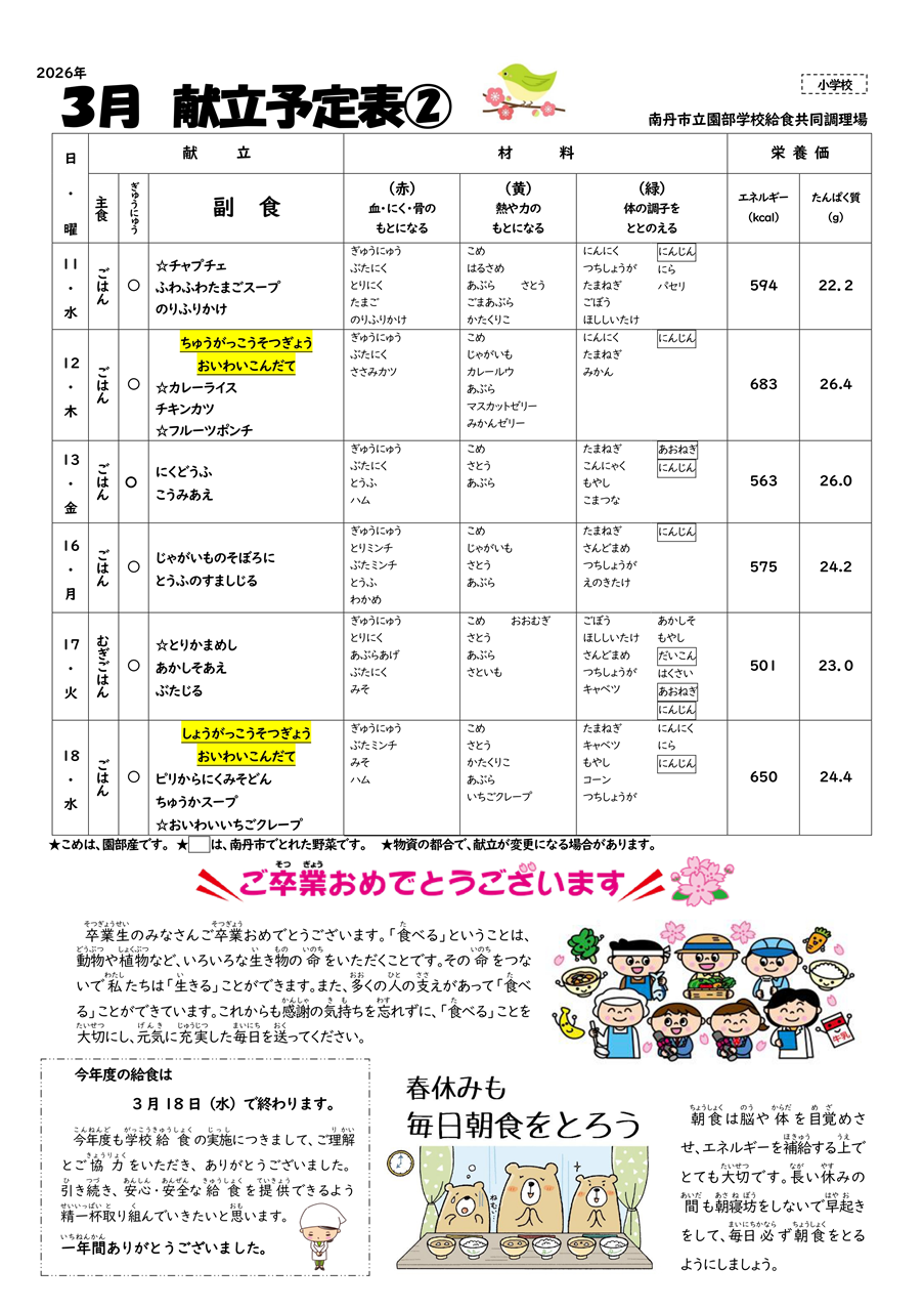 3月 給食献立表