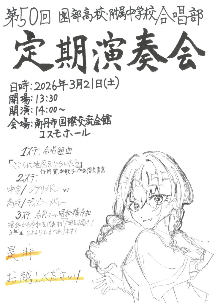 2025年度も、合唱部は高校・中学校合同で定期演奏会を行います。