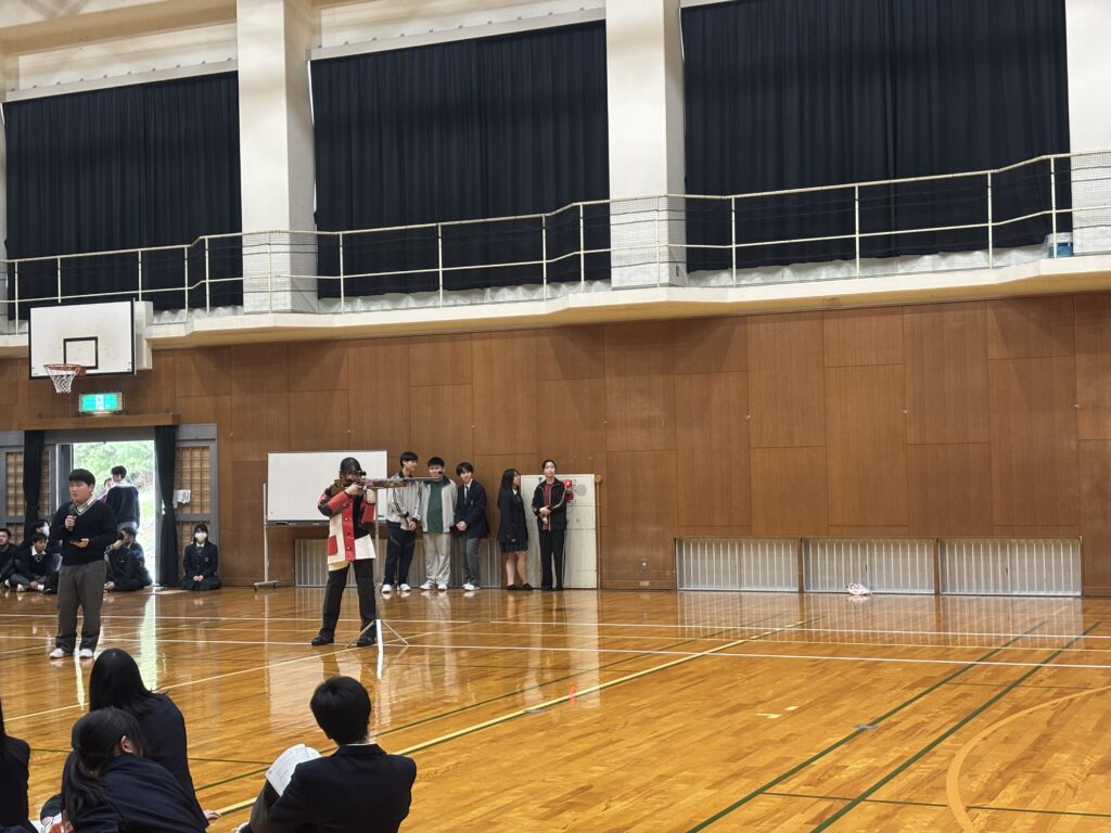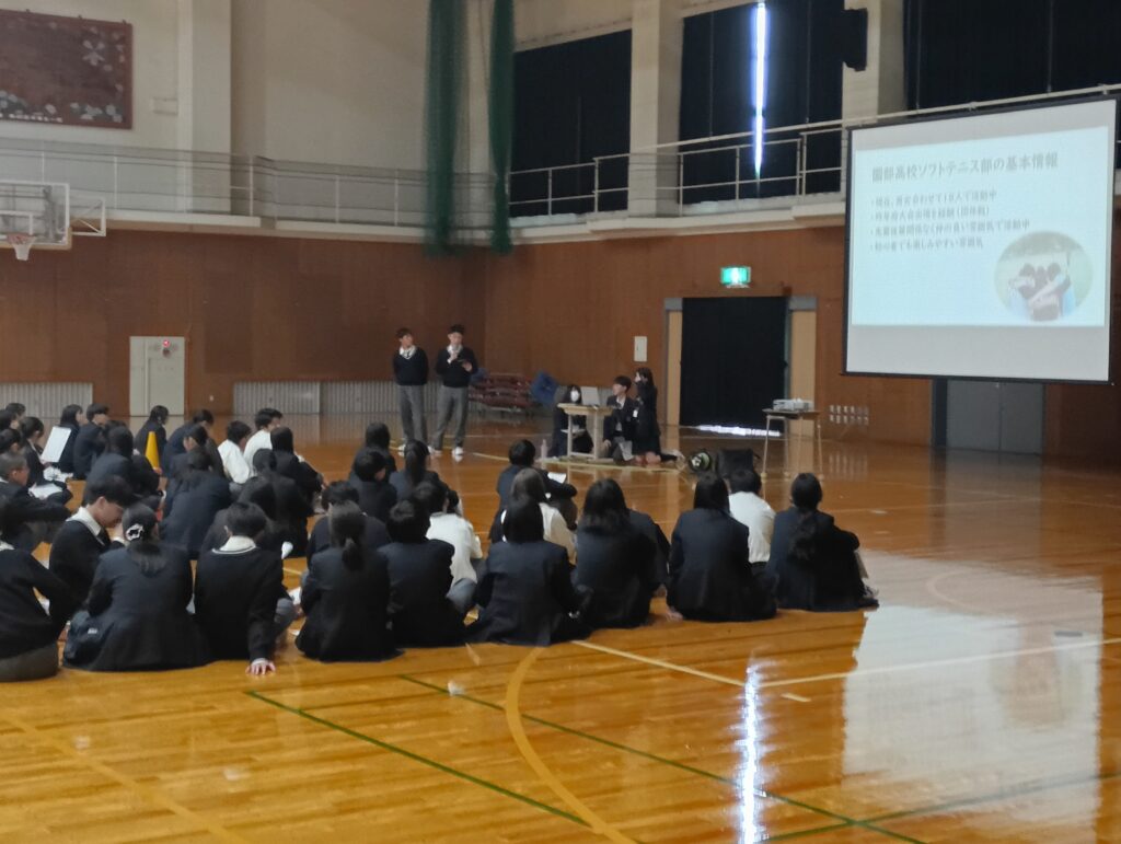 1年生新歓オリエンテーション(部活動紹介) 園高NEWS 2026.04.20 4月13日(月)、生徒会が1年生対象の部活動紹介を行いました。先輩たちがパワーポイントを駆使して活動の醍醐味を伝えたほか、部によっては気合の入った実演もしました。間近で繰り広げられる迫力のプレーや美しい演奏に、1年生は期待に胸を膨らませ、目を輝かせていました。 Post Views: 12