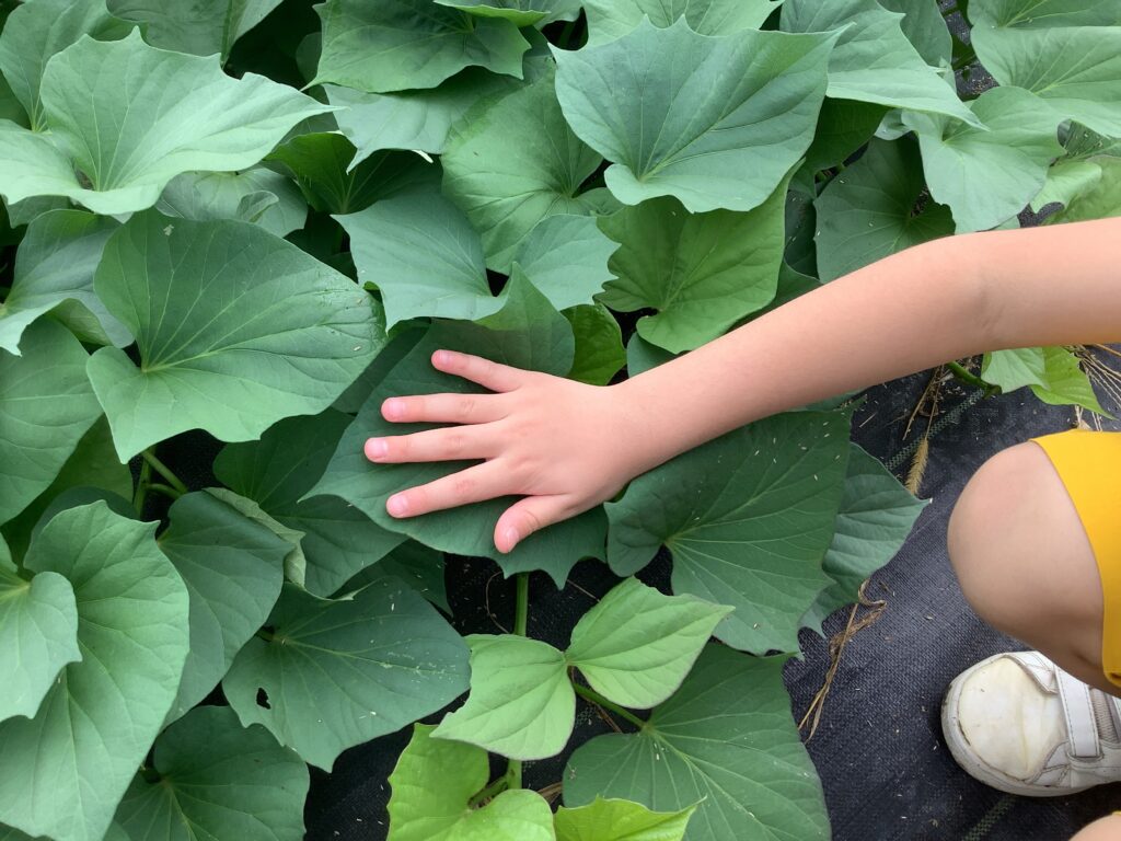 春になえを植えたさつまいも。つるがのびて、葉が大きくなっていく様子を観察してきました。
