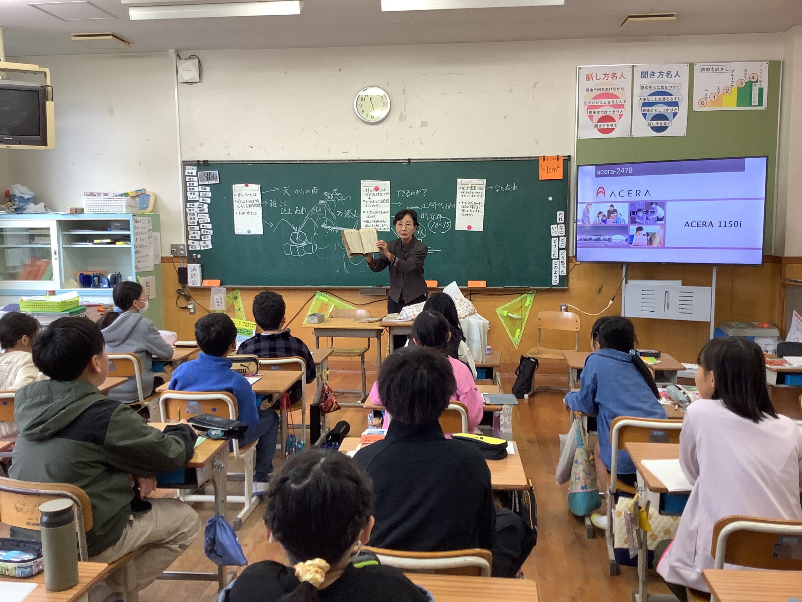 4年生の社会科では、南丹市の伝統や今も大切にされている文化や地域の発展につくした先人の働きについて学びます。園部第二小学校では、地域にある江戸の終わりから明治のはじめに作られた大西いせきについて、また大西いせきを作るために尽力された内藤良助さんについて、資料をもとに調べています。11月5日には、川辺地域の内藤さんにゲストティーチャーとして来校いただき、お話を聞きました。資料だけではわからなかったみんなの疑問を大変わかりやすく教えていただき、「良助さんは、みんなのために頑張った人だなあ。」「みんなに反対されても諦めずによう水路を完成させたなんてすごいなあ。」など様々な学びを深めることができました。11月7日には、実際に大西いせきを見学に行きます。南丹市の歴史や良さについてさらに考える機会をしていきたいと思います。
