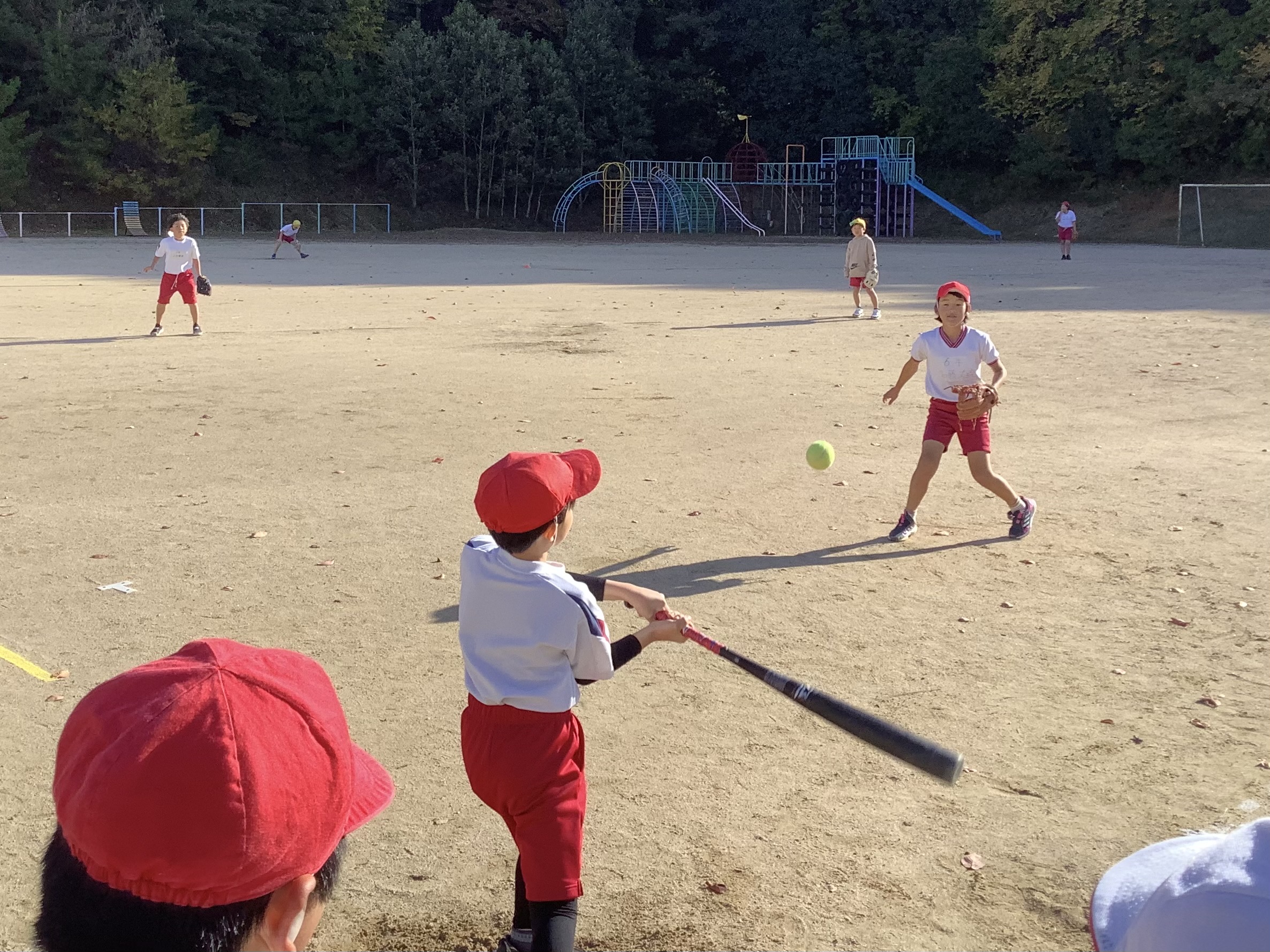 外で元気に体を動かしていたのは、野球・ドッチボールクラブ。2時間のクラブ活動の時間を、前半はドッチボール後半は野球と、時間を分けて活動していました。みんなで声を掛け合いながら、楽しんでいました。