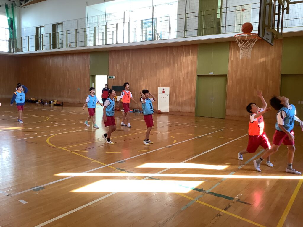 体育館からも元気な声が聞こえてきました。こちらはバスケットボール・バレーボールクラブです。今日は、バスケットボールの日でした。普段からバスケットボールに親しんでいるいないに関わらず、ボールを回しながら楽しんでいました。