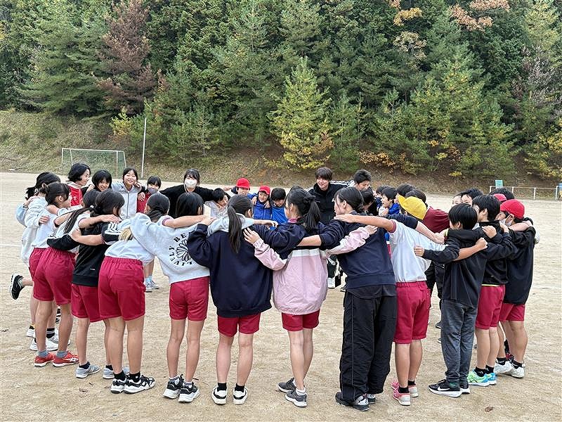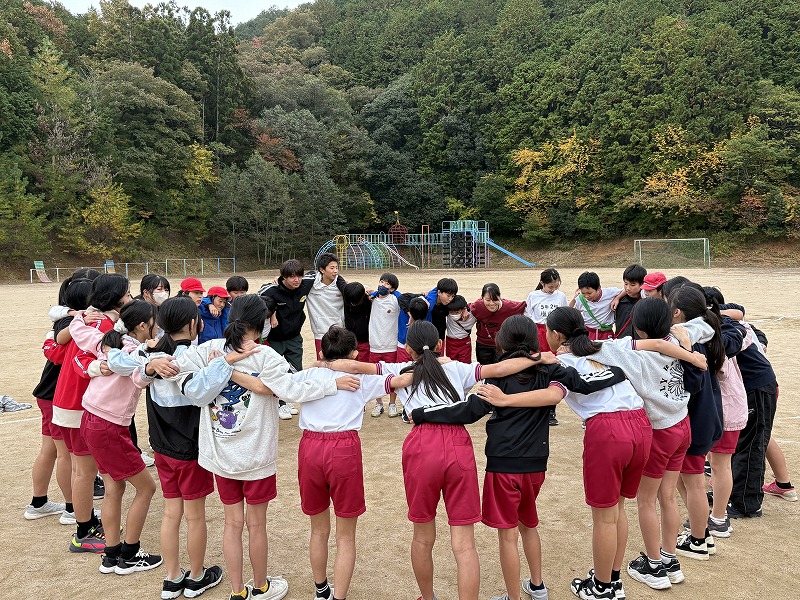 令和7年度11月15日に開催される「京都丹波キッズふれあい駅伝大会」に向けた駅伝練習には、「校内持久走記録会にむけ自分の力を伸ばそう!」「体力を高めよう」と多くの児童が参加しています。朝や中間の休み時間にも、運動場に出て走っている児童もいます。13日は、キッズ駅伝にむけた最後の練習となりました。代表となった児童が力を発揮できるよう、みんなで、願いをこめて円陣を組み応援しました。温かい空気に満ちあふれた、とても素敵な時間でした!