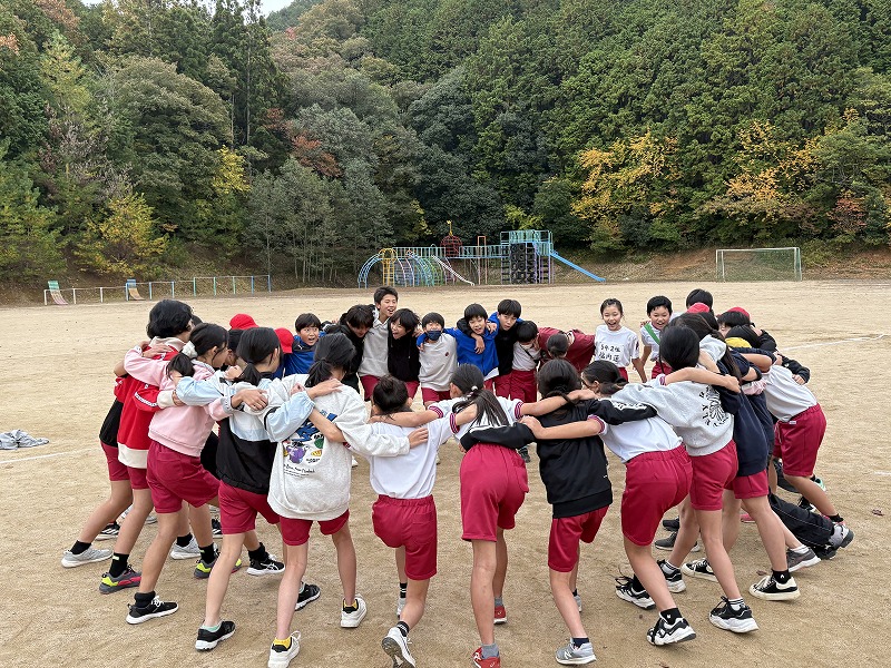 11月15日に開催される「京都丹波キッズふれあい駅伝大会」に向けた駅伝練習には、「校内持久走記録会にむけ自分の力を伸ばそう!」「体力を高めよう」と多くの児童が参加しています。朝や中間の休み時間にも、運動場に出て走っている児童もいます。13日は、キッズ駅伝にむけた最後の練習となりました。代表となった児童が力を発揮できるよう、みんなで、願いをこめて円陣を組み応援しました。温かい空気に満ちあふれた、とても素敵な時間でした!