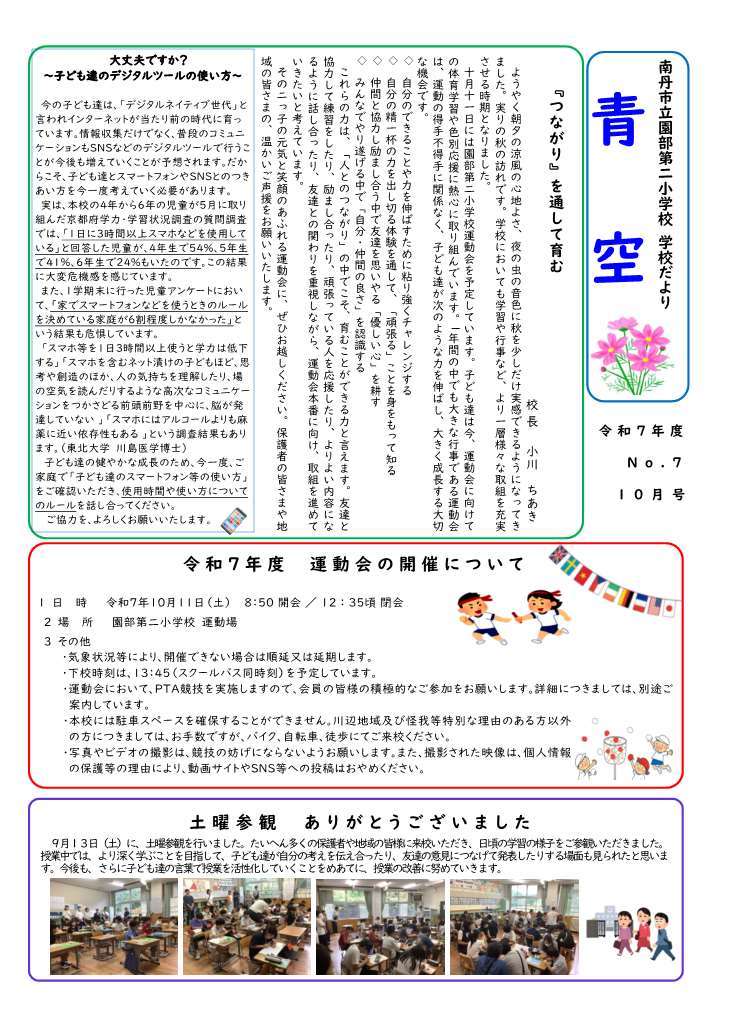 学校だより 10月号 令和7年度 Twitter Facebook はてブ Pocket LINE コピー 2025.11.27 2025.10.02 R7 10月学校だよりダウンロード Post Views: 23