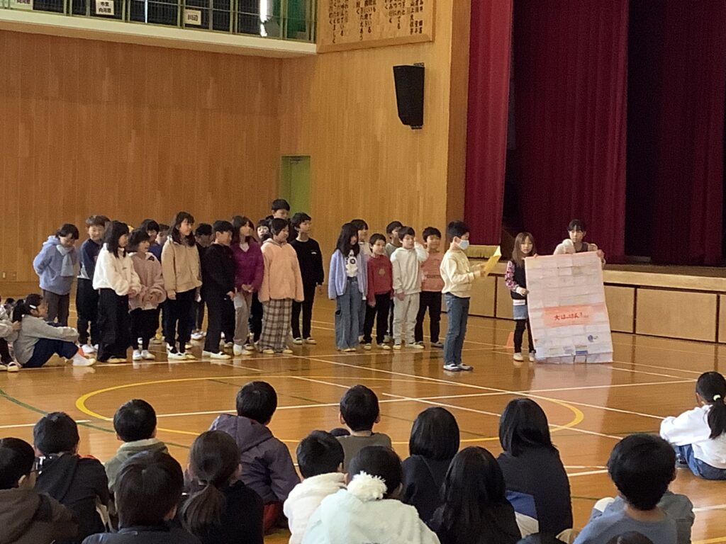 6年生は、お互いを大切に、みんなが笑顔で安心できる学校を創っていくために、学級で話し合い考えた大切な「ほっとルール」を発表しました。そして、そんな学校をみんなで創っていきましょうと全校のみんな伝えてくれました。6年生が考えた「ほっとルール」は次のことです。