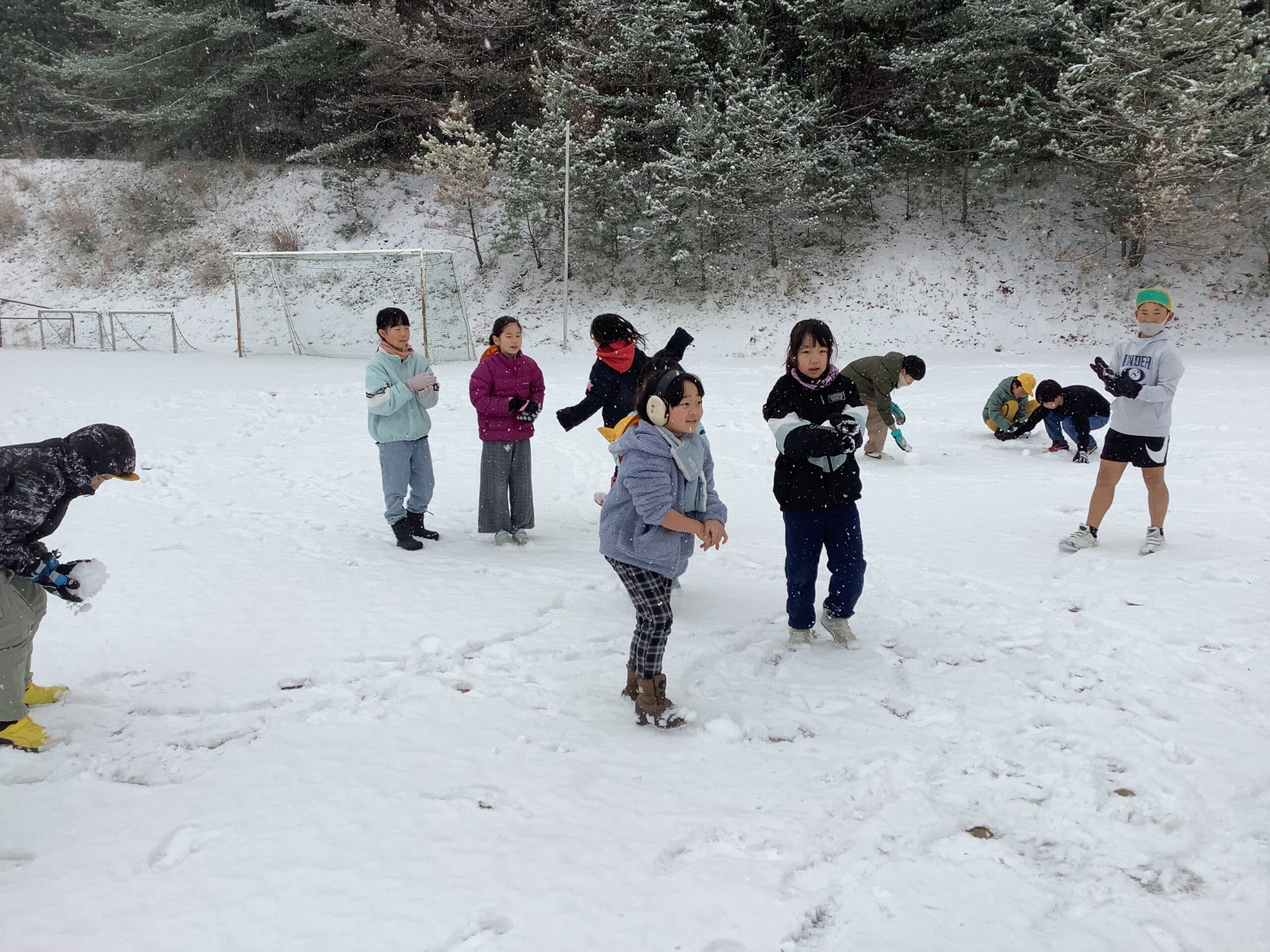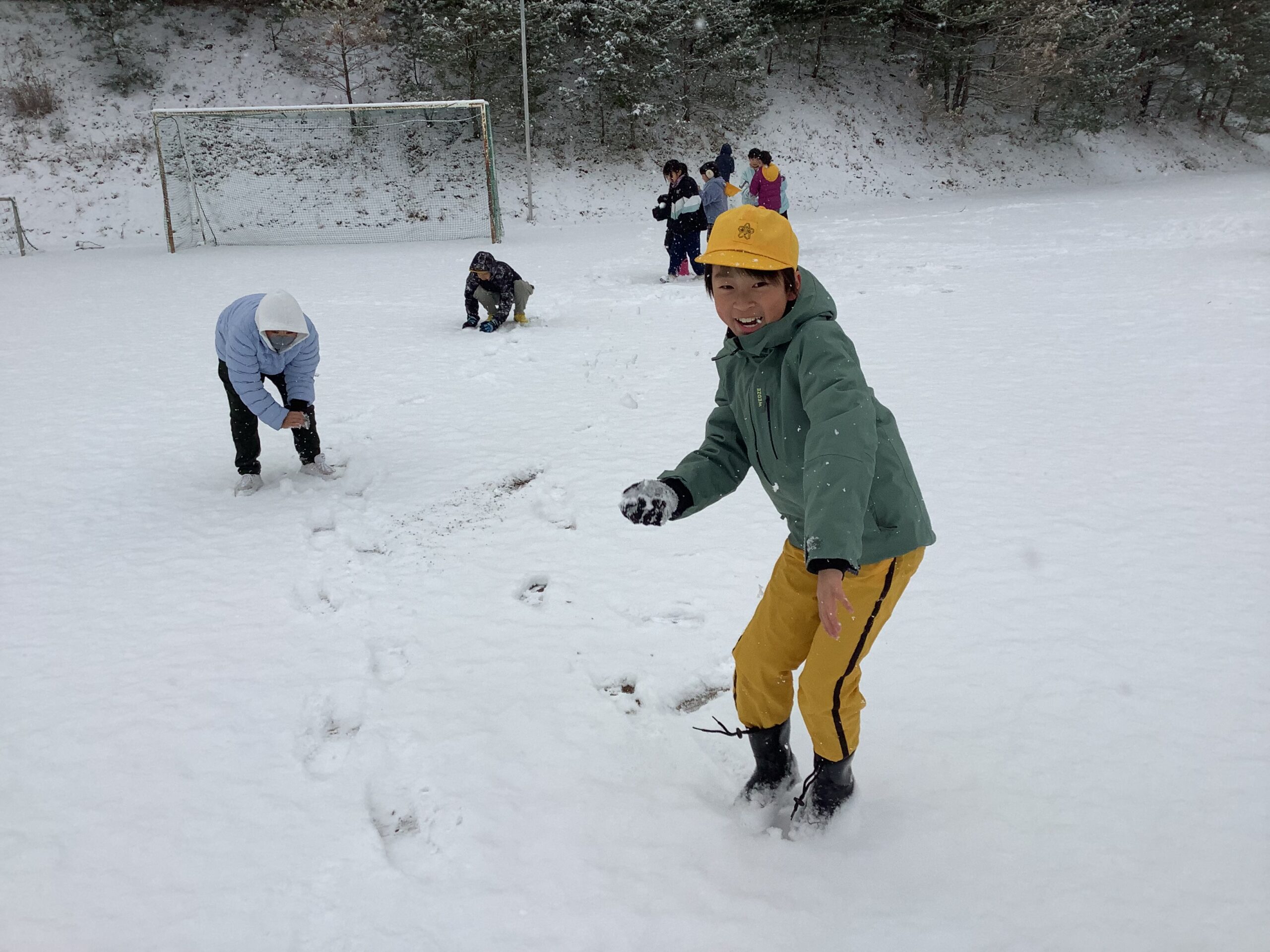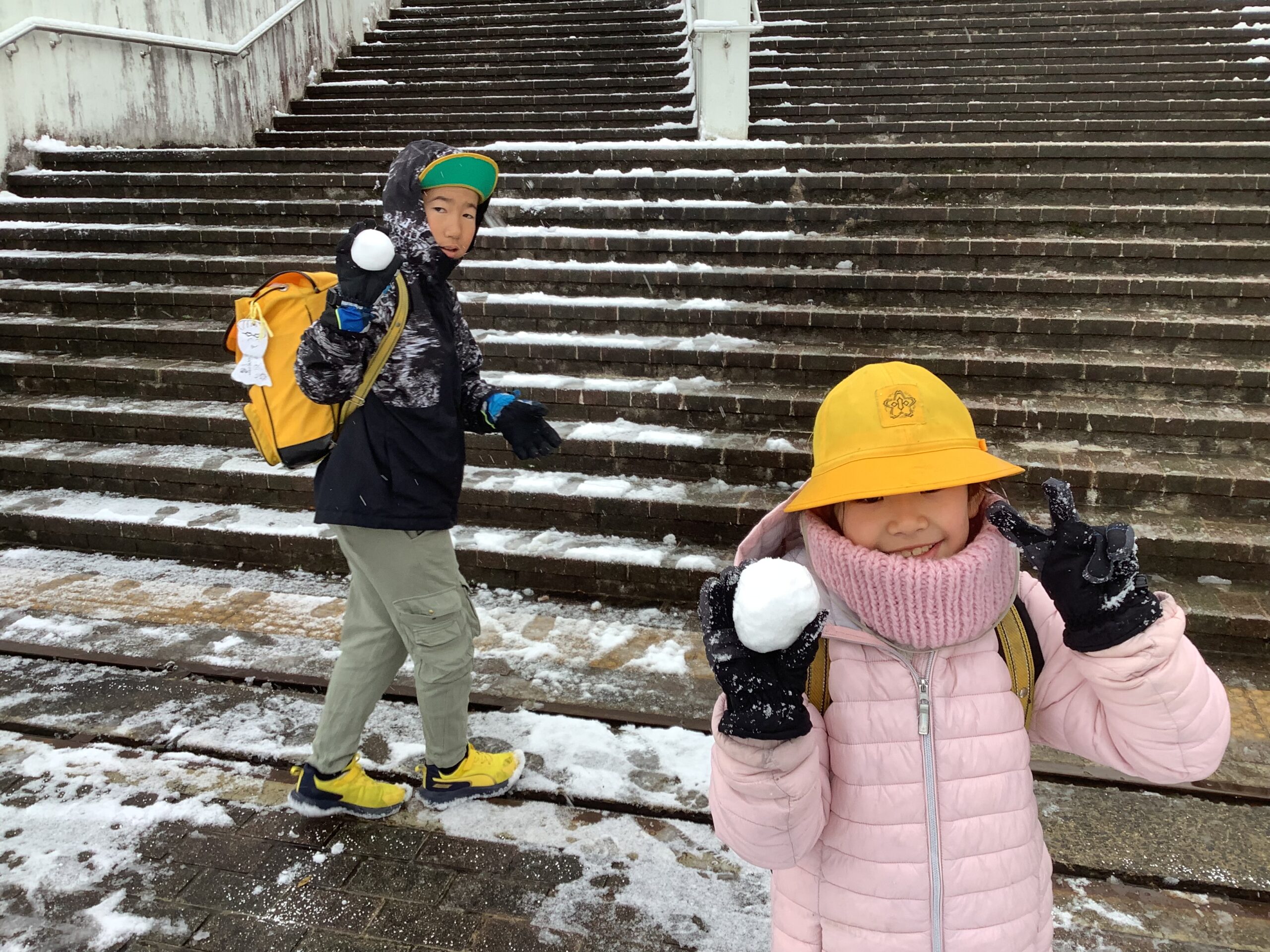 気温も冷え込みましたが、子どもたちは雪道に気を付けながら、元気に登校しました。「こんなに大きいのできたで!」と雪玉を見せてくれる子がたくさんいました。