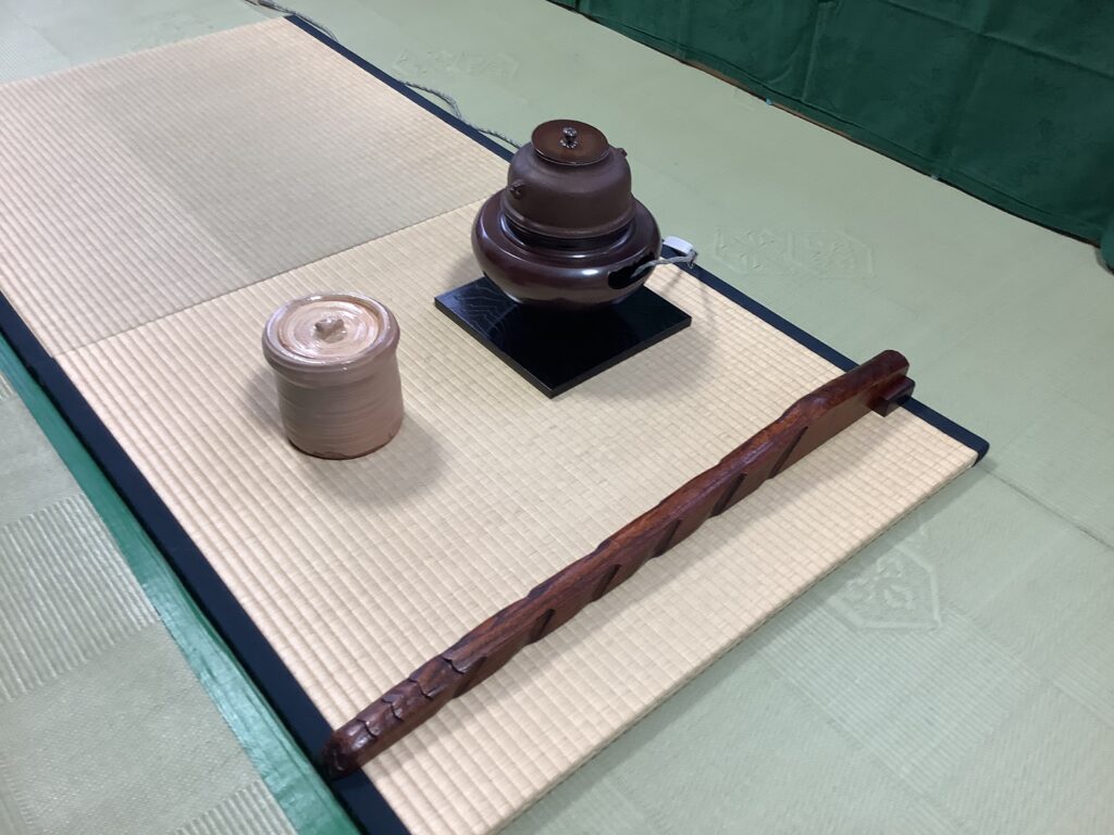 和室にかけられた書「和敬清寂」・・・「和敬清寂(わけいせいじゃく)」は、茶道の精神を凝縮した「四規(しき)」と呼ばれる重要な心得で、「和(調和)」、「敬(尊敬)」、「清(清らかさ)」、「寂(静寂)」の4つの概念から成り立ち、主客がお互いを尊重し、心身ともに清らかな状態で静かで落ち着いた境地を目指すことを表すそうです。