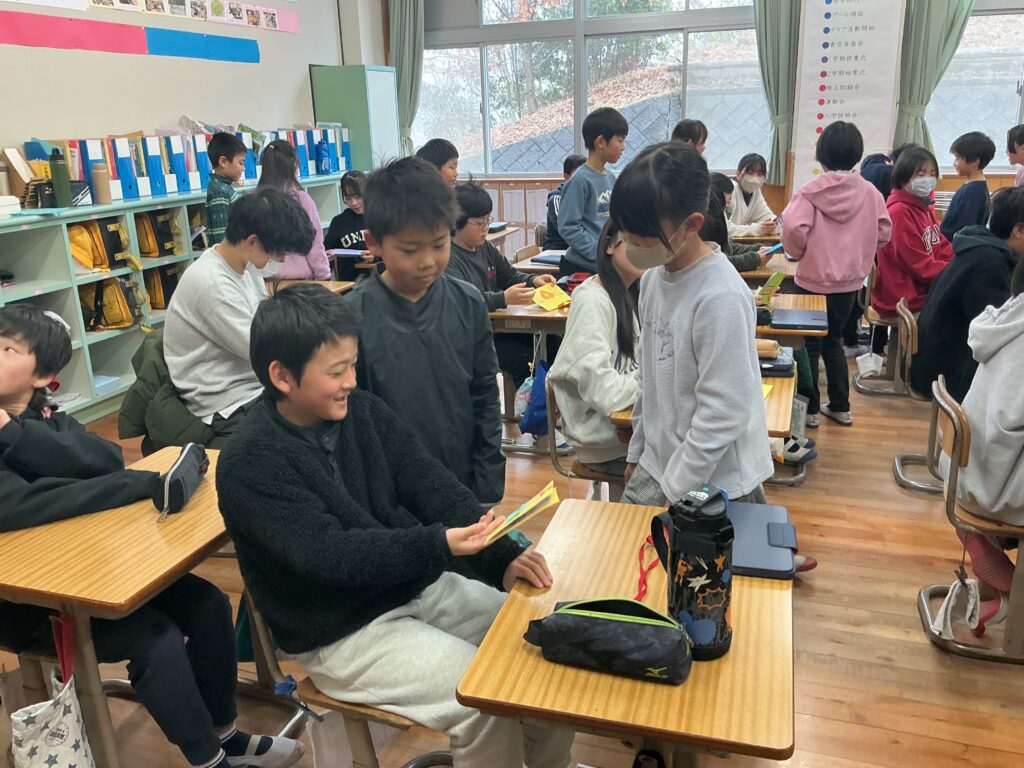 「今までありがとう。」「卒業おめでとう。」と一言添えて、なかよし班でお世話になった6年生に招待状を渡しました。