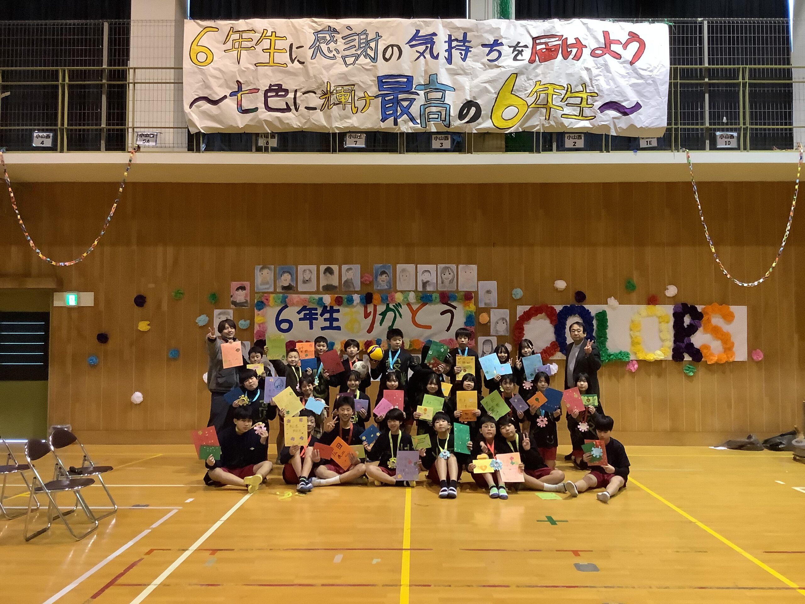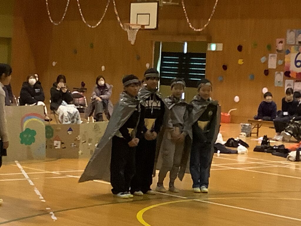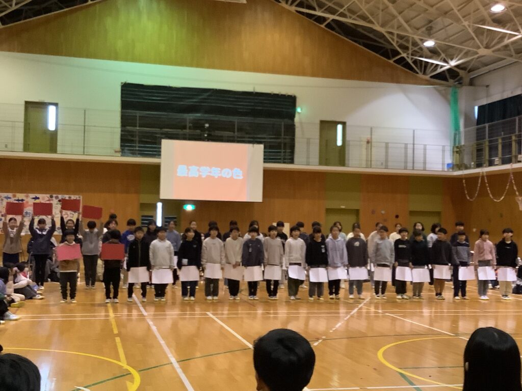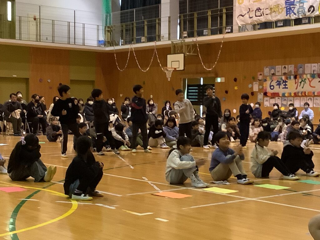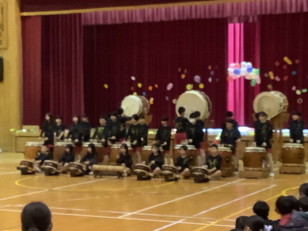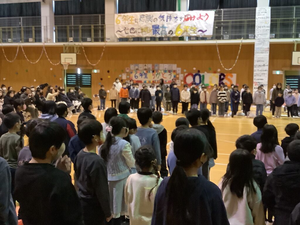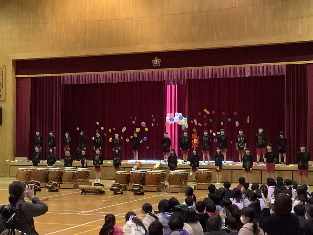 一年間、園部第二小のリーダーとして頑張ってきた6年生。6年生のおかげで、みんなが頑張れたこと、成長できたことがたくさんあります。その、6年生に「ありがとう」の気持ちを伝えようと、どの学年も工夫を凝らした発表を頑張りました。前日まで学級閉鎖だった学年もありましたが、これまでの取り組みの積み重ねにより力を発揮し、1年間のまとめとして、それぞれの学年の成長を実感できる機会ともなりました。6年生の発表はさすがです。力強い和太鼓の音と、心のこもったハーモニー、それぞれの学年や先生、おうちの方々への感謝や温かいメッセージに、会場のみんなが感動しました。