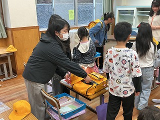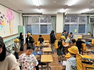 登校後は、1年生の教室で朝の準備を手伝ったり、地域児童会では班のリーダーとしてみんなをまとめたりする姿が見られました。早くも最高学年として、先頭に立って活動する様子がたくさん見られます。