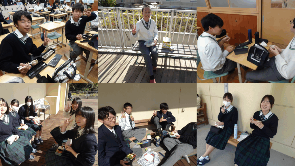 fun fan lunch time ! 2025年度のNews 2025.11.182025.10.27 10月24日(月)に実施した「fun fan lunch time !」は、生徒会本部が企画して、多目的室、各教室、ウッドデッキ、東屋、一貫棟周りのベンチの中から事前に好きな場所を選び、そこでお弁当を食べるといったものです。普段とは違う場所で食べるだけで、いつものお弁当がより一層おいしく感じますね。 Post Views: 8