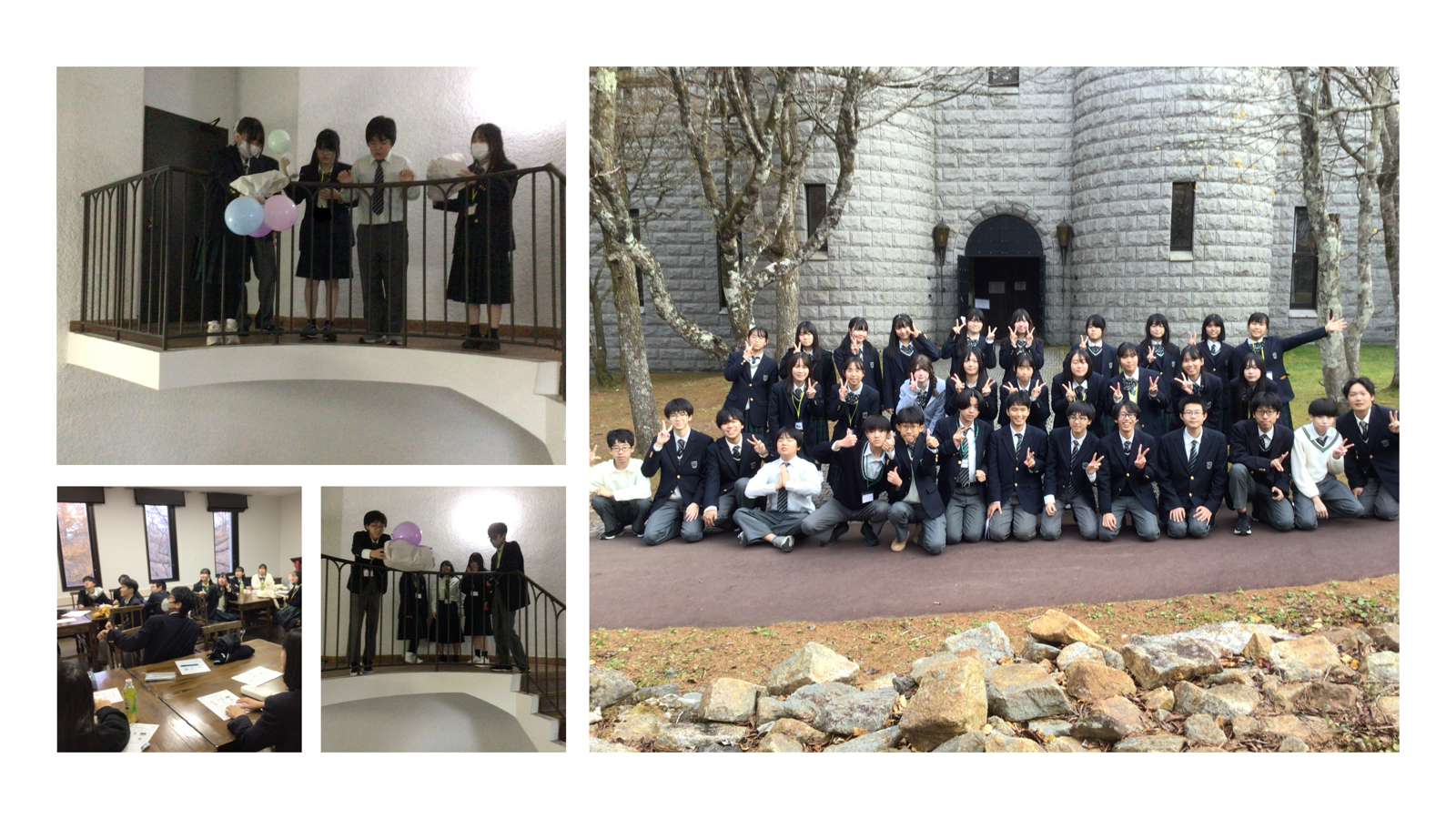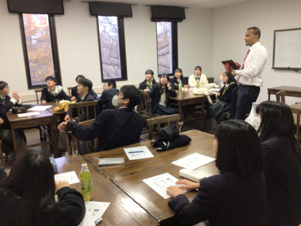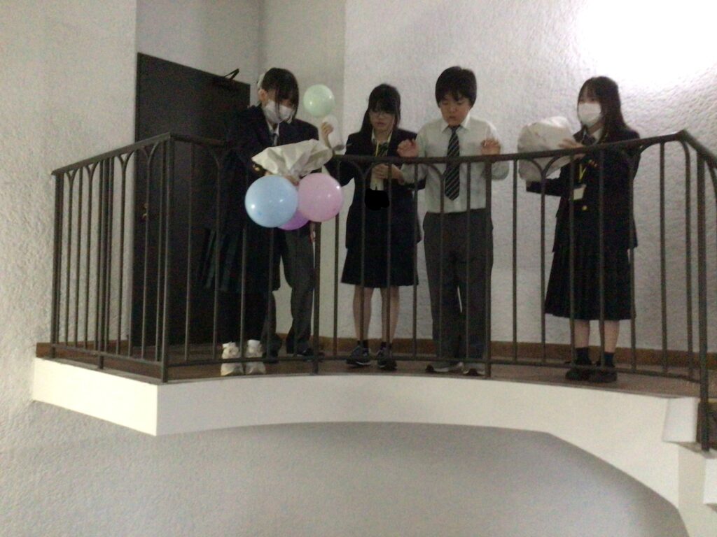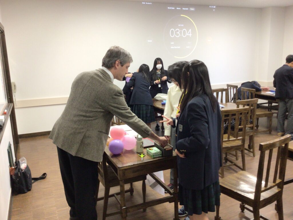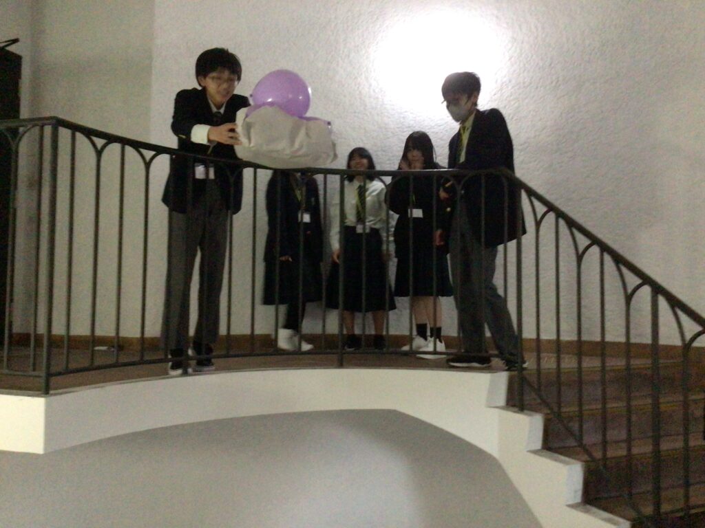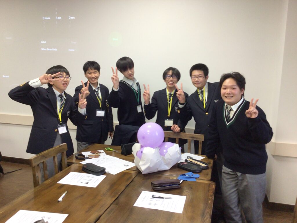 午後のLesson 4 はScience Challengeでした。風船や紙を使って3階から卵を落としても割れない仕掛けを作りました。実験が成功したときはどのグループも大歓声でした。また、英語を使ったチームビルディングの勉強にもなりました。授業終了後に、先生から”Be creative!(創造的であれ!)”とのアドバイスをいただきました。園部高校附属中学校の基本コンセプト「大志・知・創造」とも重なるお話でした。