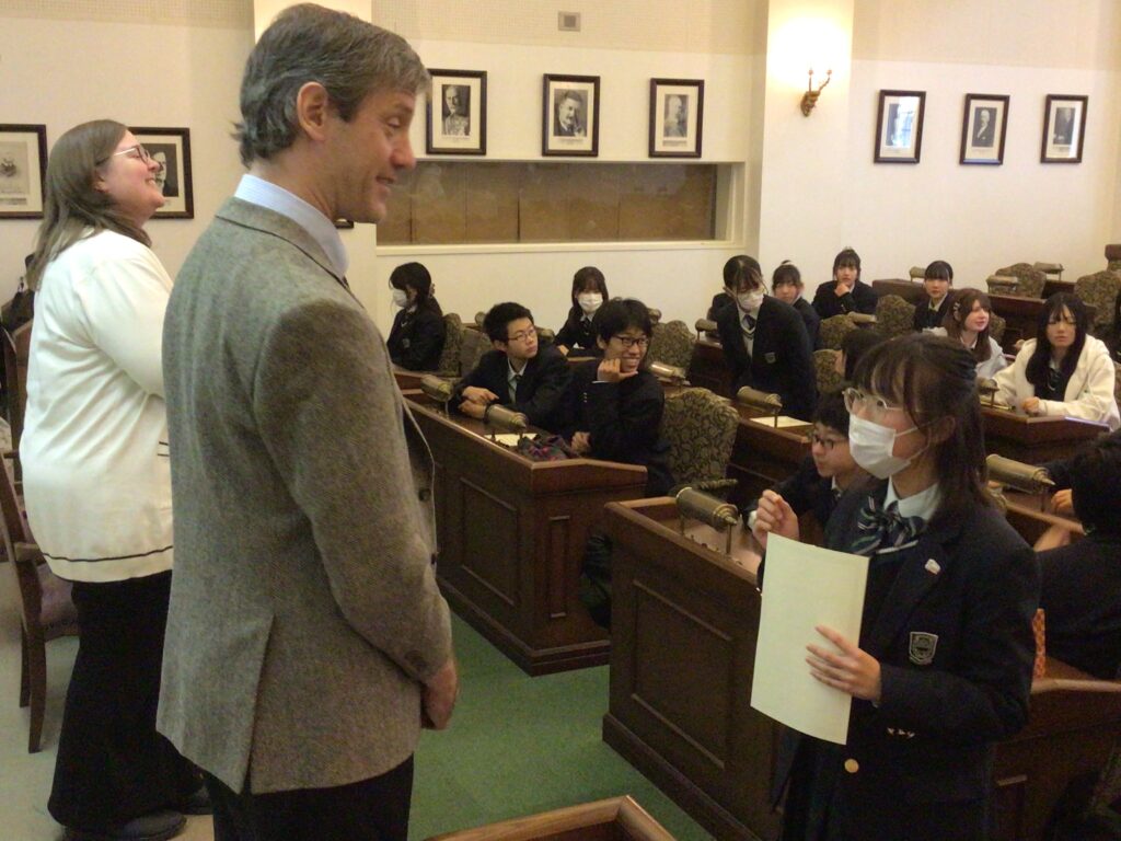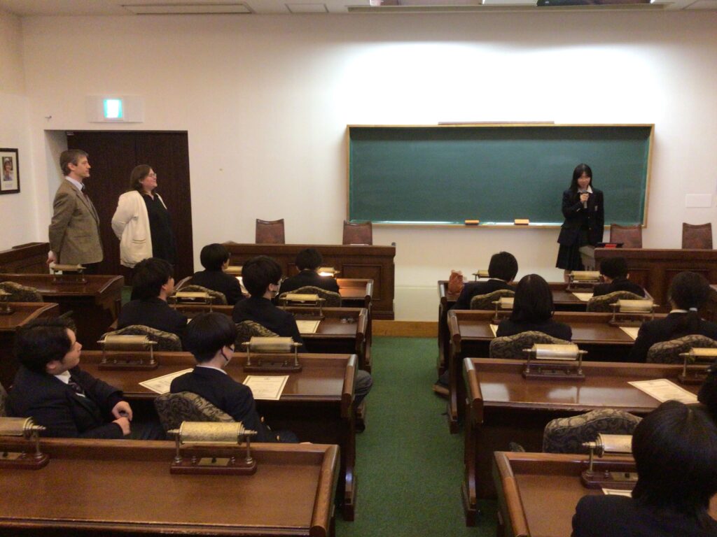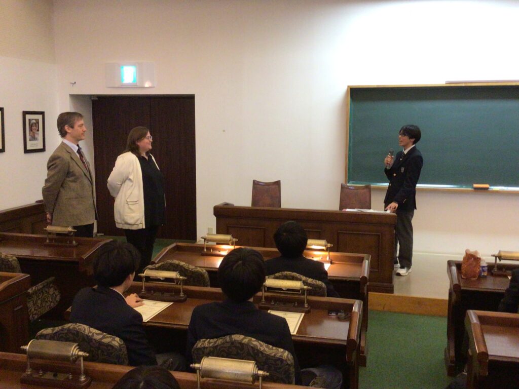 解散式では、実行委員が司会をし、JTBの原田様からの挨拶をいただくとともに、代表生徒が英語でお礼の言葉を述べました。解散式にて研修を終了とし、京都へと移動します。